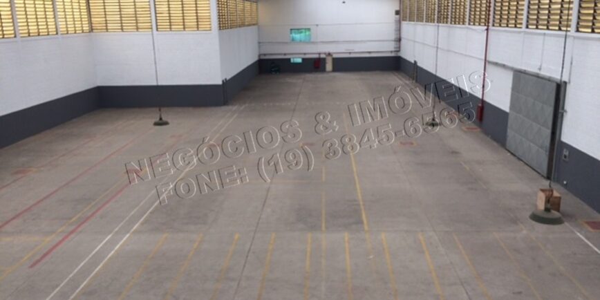 Galpão para locação com área construída de 3.350 m², área fabril de 2.000 m², área adm 450 m², pé direito de 9 M , piso com resistência de 5 ton/m², 3 docas e portão fabril de 7,00 M de acesso ao piso para veículos de pequeno porte.