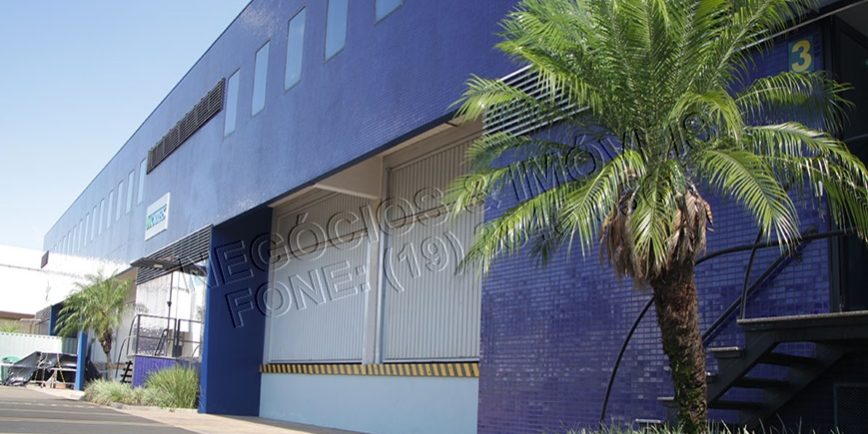 Galpão para Locação em Campinas, com área construída de 1.168 m², área fabril de 804 m², área administrativa de 300 m², pé direito de 10 metros, docas e pátio de 1.000 m².